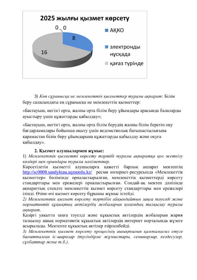 Көрсету бойынша есепті жария талқылау "Ақмола облысы білім басқармасының Сандықтау ауданы бойынша білім бөлімінің Новоникольское селосының жалпы білім беретін мектебі" КММ мемлекеттік көрсетілетін қызметтер