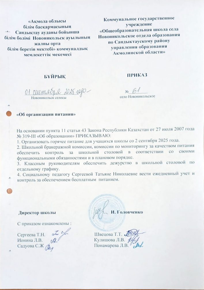 Коммунальное государственное учреждение "Общеобразовательная школа села Новоникольское отдела образования по Сандыктаускому району управления образования Акмолинской области"