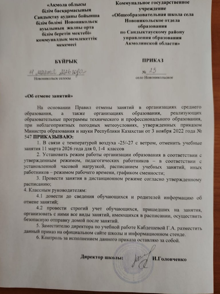 Коммунальное государственное учреждение "Общеобразовательная школа села Новоникольское отдела образования по Сандыктаускому району управления образования Акмолинской области"